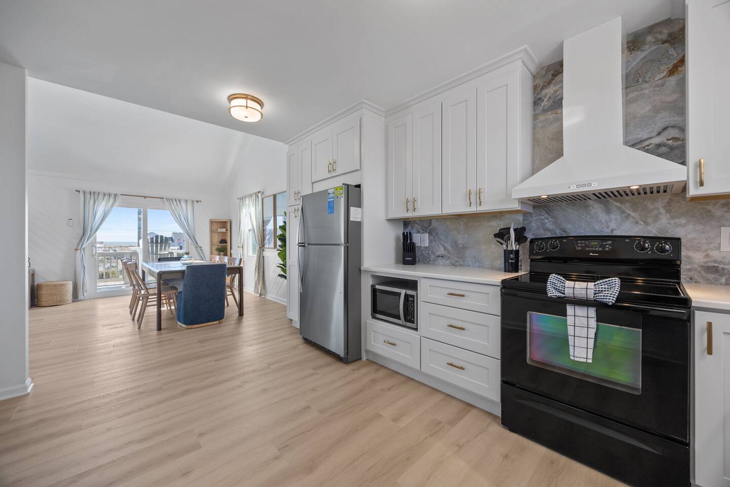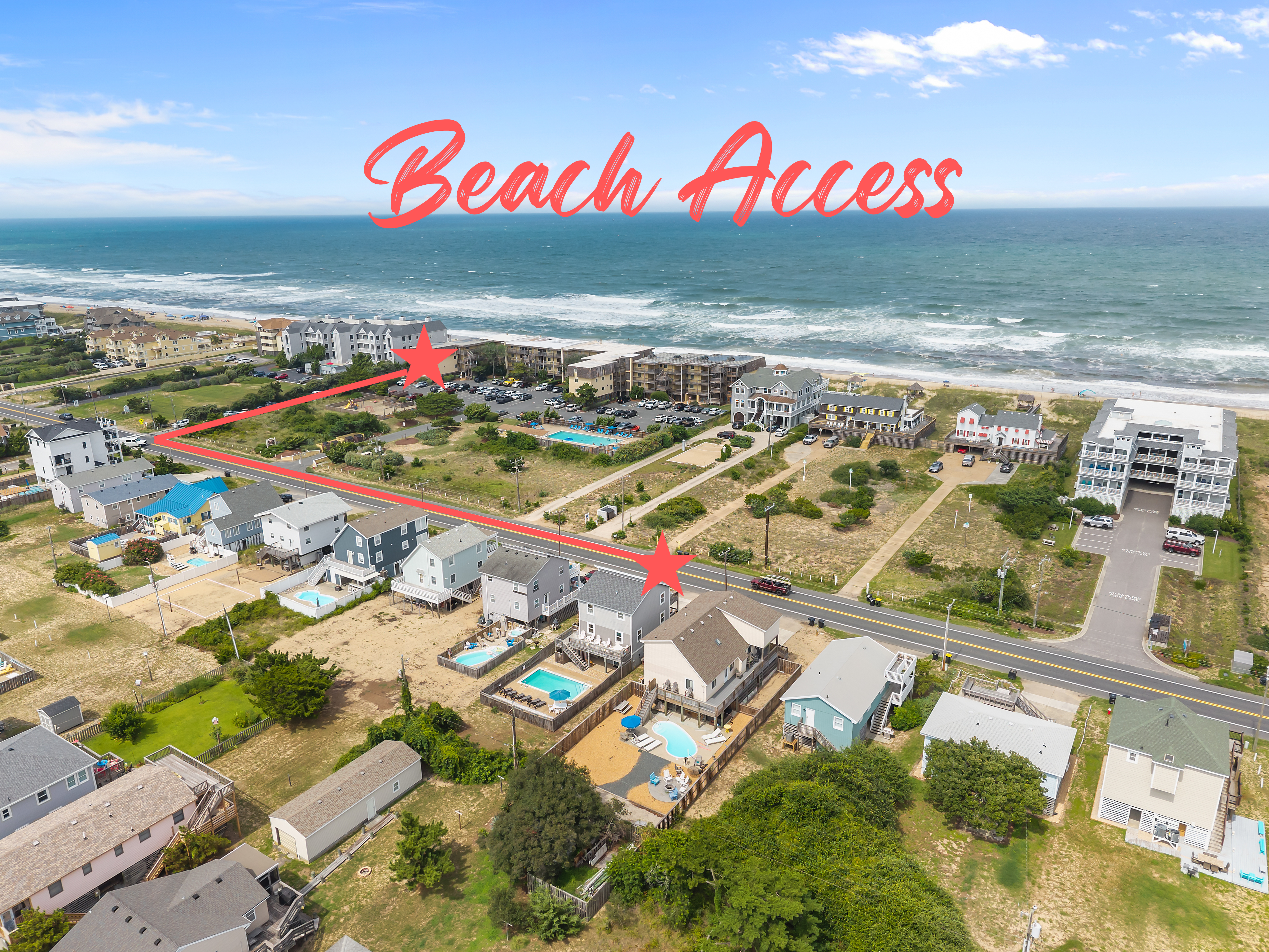 We updated our property in 2025 - Brand-new enlarged kitchen, upgraded flooring, seasonal pool heating and refreshed furniture throughout the home! Welcome to π Sand & Sun RX β a cozy and charming 5-bedroom, 2.5-bath semi-oceanfront retreat in Kill Devil Hills, ideally located in the heart of the Outer Banks. Enjoy ocean views from the top deck, cool off in the private pool, and stroll to the beach in just 4 minutes. π What Youβll Love: π 4-Min Walk to 1st Street Beach Access (with lifeguards & showers) πββοΈ Private Pool- seasonally heated (no extra heating fees) π Semi Ocean Views from top deck π 5 Bedrooms | 2.5 Bathrooms | Sleeps 10 πΆ Fast WiFi & TVs with Firestick devices for streaming π Off-Street Parking for 4 Vehicles π Keyless Entry π§Ό Linens, Towels, Shampoo, Conditioner & Body Wash Included πΆ Family-Friendly Amenities: Pack-n-play, step stool, dishes, books, high chair & more β Pet friendly π½ Fully Stocked Kitchen: Keurig, French press, crock pot, blender, toaster & more You're also walking distance to OBX favorites like Goombayβs Raw Bar, Beachside Bistro, Lost Treasure Golf, Maxβs Pizza, Publix, and the iconic Wright Brothers Memorial. π Beach Ready! Weβve got your beach day covered β enjoy complimentary use of: β Beach chairs β Beach umbrella β Beach tent β Beach wagon β Coolers β Sand toys π The Space at a Glance Sleeping Arrangements β 5 bedroom/7 beds ποΈ Bedroom 1 β Upper Level: Queen bed with attached half bath ποΈ Bedroom 2 β Middle Level: Queen bed, sliding glass door to covered porch, shares Jack-and-Jill bathroom ποΈ Bedroom 3 β Middle Level: Queen bed, connected to shared Jack-and-Jill bathroom ποΈ Bedroom 4 β Middle Level: Twin bunk bed with additional twin pull out trundle β perfect for kids or friends ποΈ Bedroom 5 β Middle Level: Queen bed with access to covered porch via sliding glass door β Premium pillows, linens & bedding β TVs, dresser, and bedside table in each room β Closets with hangers Bathrooms β 2 Full & 1 Half π§Ό Upper Level: Half bathroom (attached to Bedroom 1) π Middle Level Hallway: Full bath with tub/shower combo πΏ Jack-n-Jill Bathroom: Walk-in shower (shared by bedroom 2 & 3) β Fresh towels provided β Shampoo, conditioner & body wash included π½οΈ Fully Equipped Kitchen & Dining Space Appliances: β Oven & Stove β Microwave β Dishwasher β Refrigerator & Freezer Small Appliances: β Keurig & French Press β Crockpot β Toaster Cookware & Serve-ware: β Pots, pans, crockpot, blender, toaster β Glassware, dishes, silverware β Plasticware for poolside safety β Knife set π΄ Dining Room Coastal-style dining table with seating for 10 ποΈ Living Room Cozy coastal furnishings: β Sectional & accent chairs β Flat screen TV with Firesticks for streaming β Assortment of family-friendly board games π§Ί Laundry β Washer & dryer available for guest use on ground level, separate entrance β Iron & ironing board included (bedroom closet) π΄ Outdoor Features β Private Pool with seasonal heating (fenced, gated) β Top Deck: Semi-ocean views with hightop table and chairs β Covered Front Porch: Overlooking beach road, relaxing seating β Rear Deck: Overlooks backyard and pool, gate to enter, stairs to pool β Outdoor Shower β Entry via Covered Carport β Driveway Parking for four vehicles β Propane Grill β Propane fire pit for relaxing in the back yard Private Pool Opens Early April and closes late October. β Pool heating is included (no extra fee) during April, May, late Sept, and October. β Please note: Stairs are required to access the home and may not be suitable for guests with limited mobility. π Walkable & Convenient Location Walking Distance to: π 1st Street Beach Access β 0.2 miles / 3β4 min πΉ Goombayβs Raw Bar & Grill β 0.2 miles / 3β4 min π½ Beachside Bistro β 0.5 miles / 12 min Short Drive To: π³ Jolly Roger Restaurant β 1 min β³οΈ Lost Treasure Golf β 2 min π© Wright Brothers Memorial β 2 min π¬ R/C Kill Devil Hills Movies β 3 min π Maxβs Italian Restaurant & Pizzeria β 3 min π£ Avalon Fishing Pier β 3 min π Grocery store: Publix β 3 min π Local Playground (Meekins Field) β 5 min π» Outer Banks Brewing Station β 5 min π₯ OBX Laser Tag β 7 min